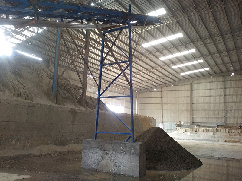 2、装载机将原料装入喂料斗内料将原料均匀给予石粉清洗设备。